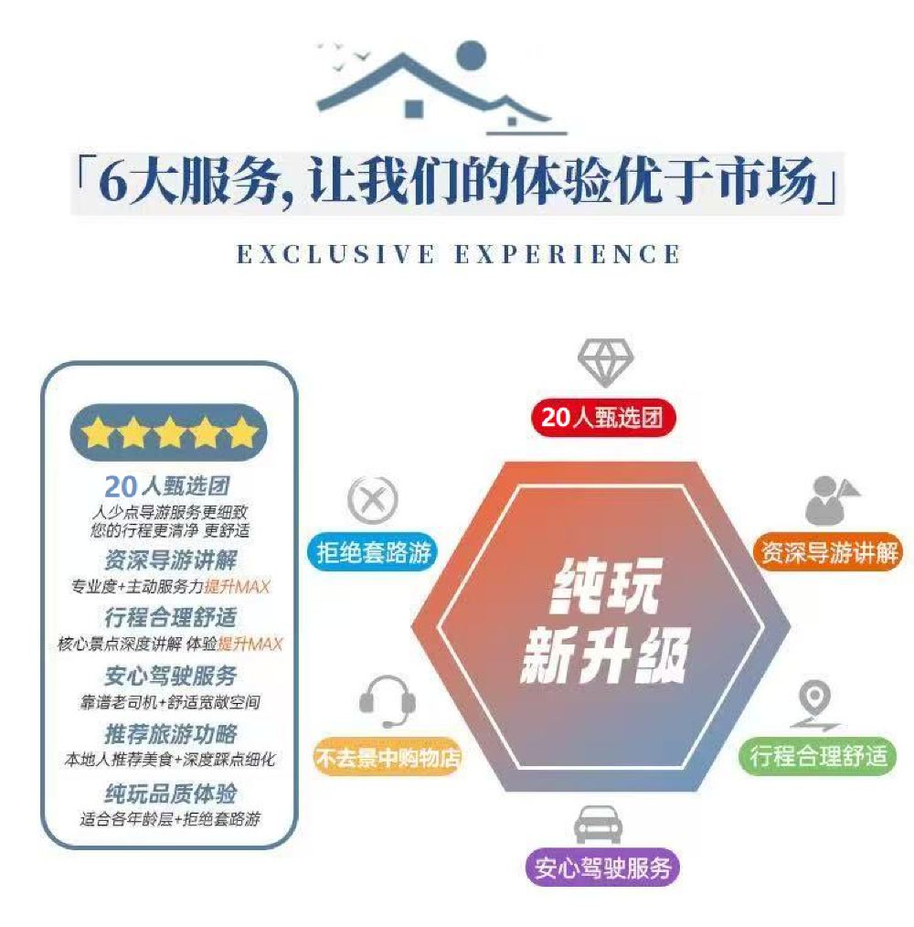 温馨提示:产品保证纯玩团,不去任何购物店【包括景区购物店】,没有隐形消费,如需定制私家团可咨询客服。