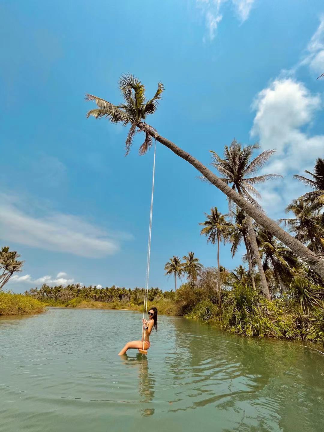 5:河道穿越过程中可以拍秋千,岛上小木屋,观看真正的椰子鸡,还有无数小螃蟹。