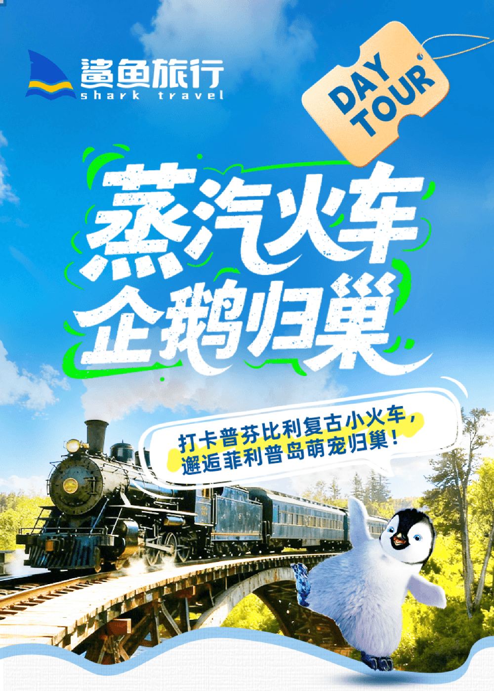 【18、19号特惠】墨尔本普芬比利蒸汽火车+菲利普岛一日游【霍格沃兹同款蒸汽火车!穿梭丹顿农山脉,打卡网红栈桥。坐在窗边手脚伸出,感受梦幻童话般的自然之旅。】