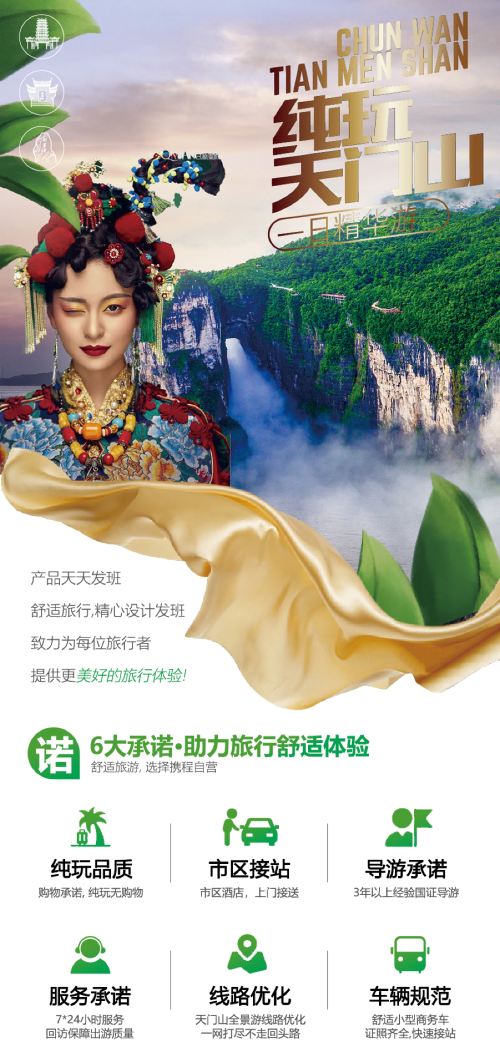 C线运营方式不变:自山门检票进山——乘天门洞快线索道上行至天门洞游览——自天门洞后乘7级穿山自动扶梯上山顶——游览山顶各景点——再乘7级穿山自动扶梯返回天门洞——乘天门洞快线索道下山至山门出景区。