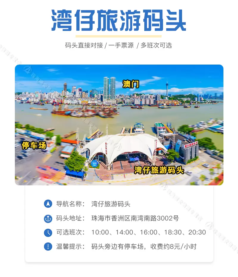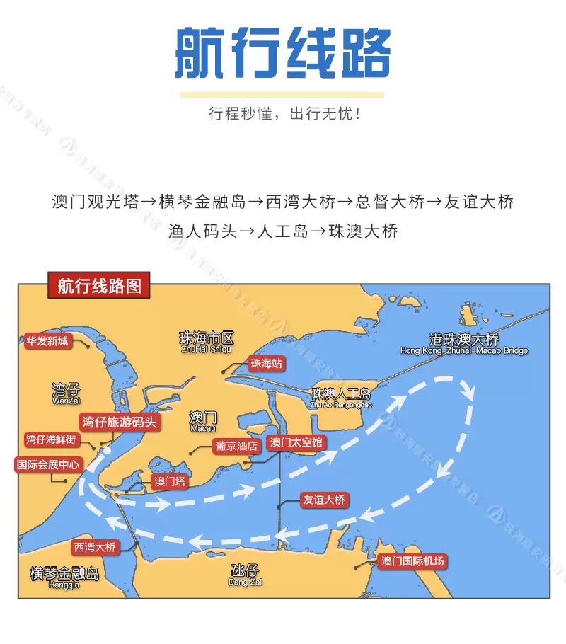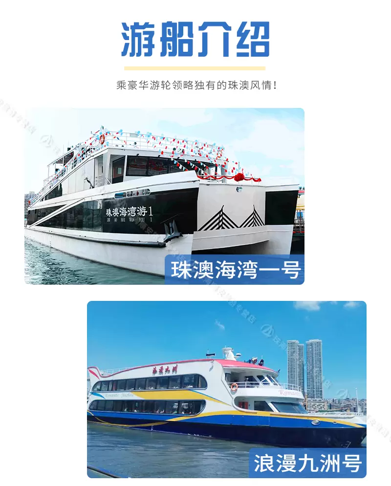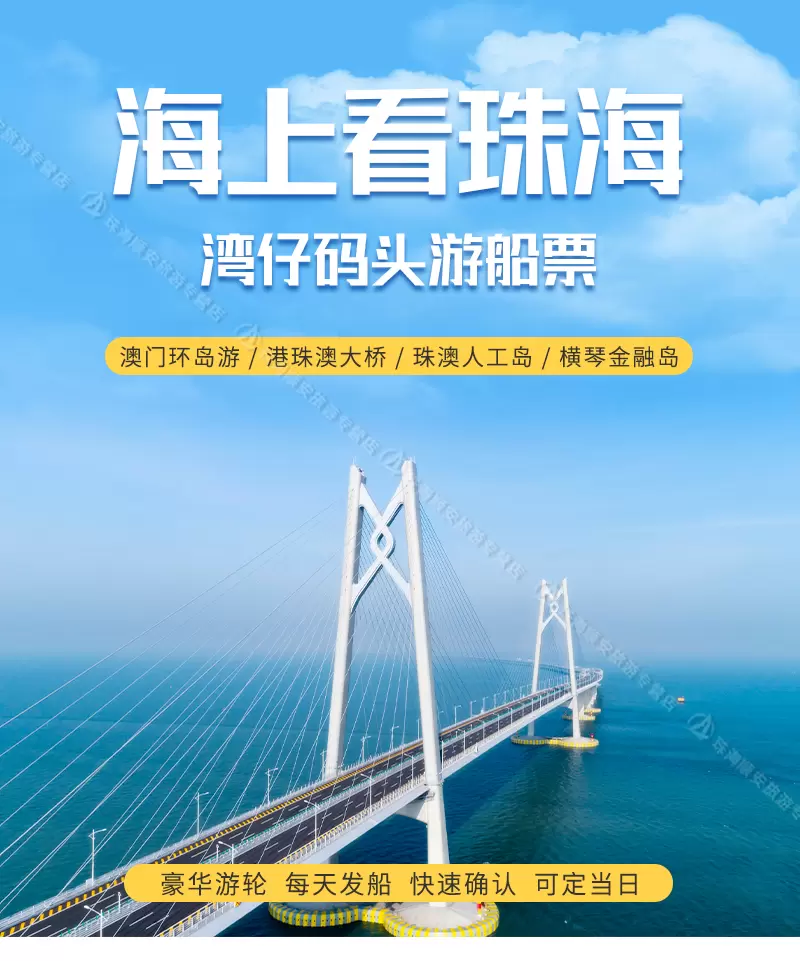 【珠海游船】澳门环岛游+海上看港珠澳大桥 *珠海湾仔码头* 可定当日 日航夜航 快速出票