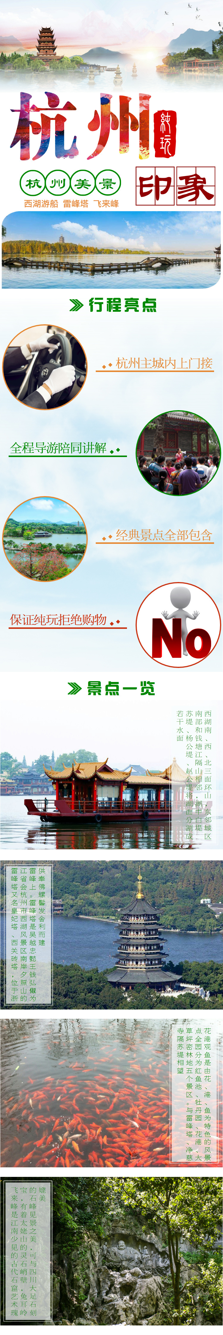 纯玩上门接 雷峰塔+西湖游船+花港观鱼+灵隐飞来峰一日游