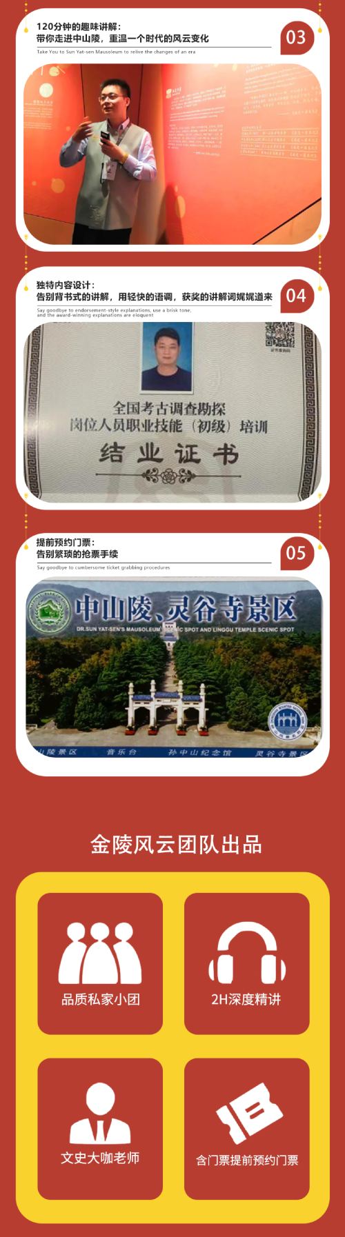 1.中山陵景区门票免费,我司代为预约。