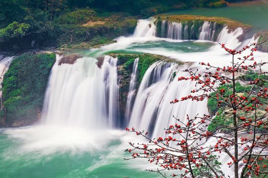 ▲ 瀑布周围群山环绕,植被茂密,景色秀丽,与越南的板约瀑布相连,形成了独特的跨国瀑布景观