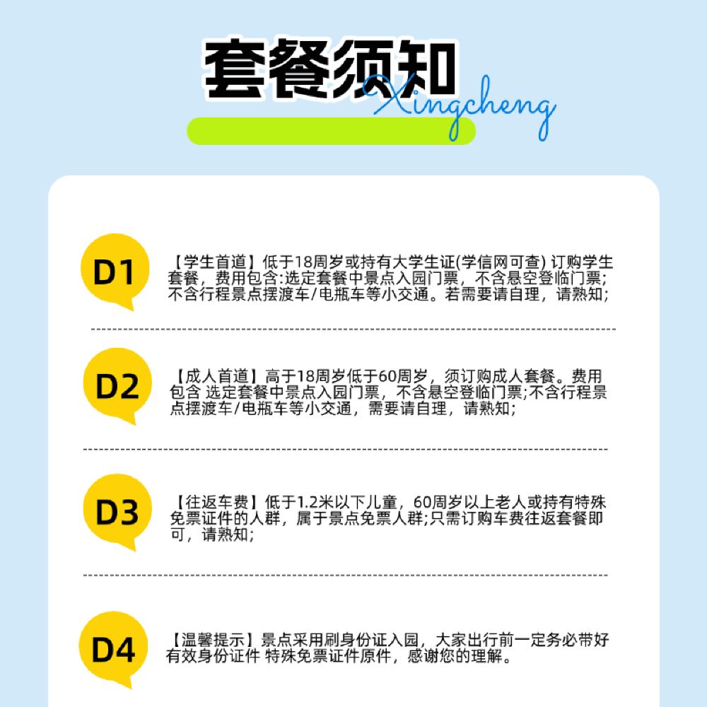 所有含门票套餐,网上无法预约门票的,导游去了景区现场买票,如遇景区现场临时停票的情况,无法入园,含门票退门票费用,买卖双方无责,下单默认同意本条款,介意慎拍.