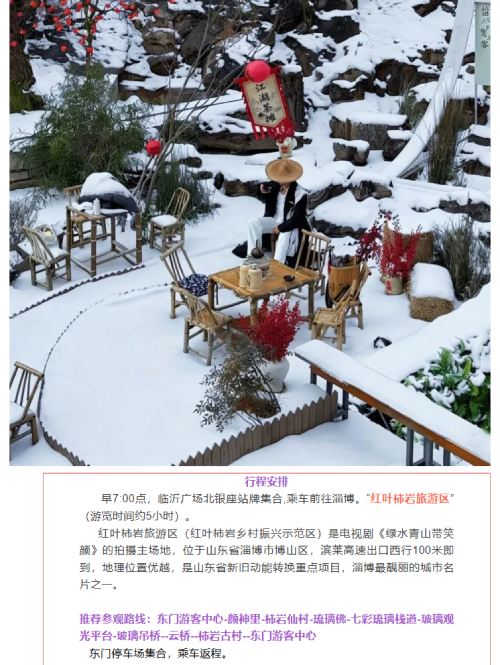 【临沂出发】淄博红叶柿岩、踏雪寻梅季一日游【秋风循山色而至,向柿岩泼洒斑斓,从五彩缤纷、层林尽染,到万叶飘丹、漫山红遍。十月中旬,红叶柿岩万亩】