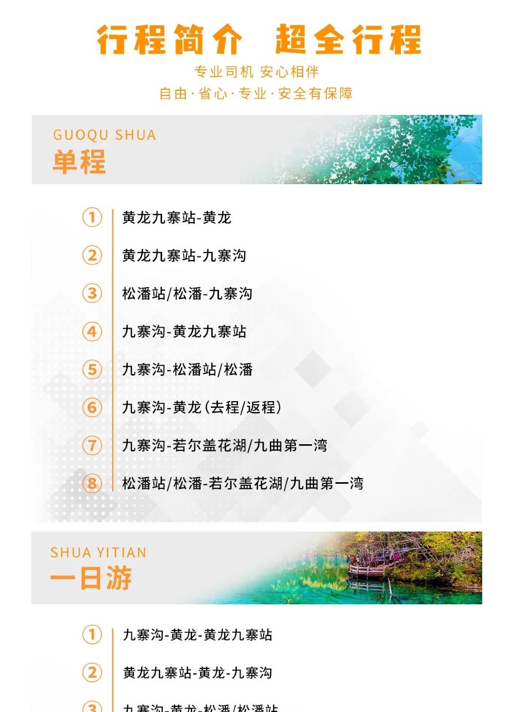 包车游【黄九站/松潘站-九寨沟『轿车 商务车』任意时间出发】【自由行推荐 | 全程不等人 说走就走 | 行程轻松 | 出行方便 | 避免中转】