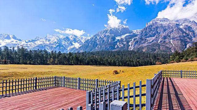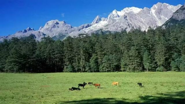 ▲ ▲ 第一是观景 由近至远,层层推移,立体景观,多姿多彩。首先是脚下的草坪,平缓而起伏,连绵千米。春夏是碧草连天,山花浪漫,秋天是一片泛黄,冬天则成了一个银色的世界,四季颜色变化。其次是草甸边缘的森林,在雪山与草甸之间形成一个天然屏障,在视线中,它色感沉厚,如默默守望这片草甸的牧人。最后是玉龙雪山,它高耸入云、荡气吐雾,巨 大的身影仿佛从空中俯视着这里,像严父慈母般将草甸拥入它的怀抱