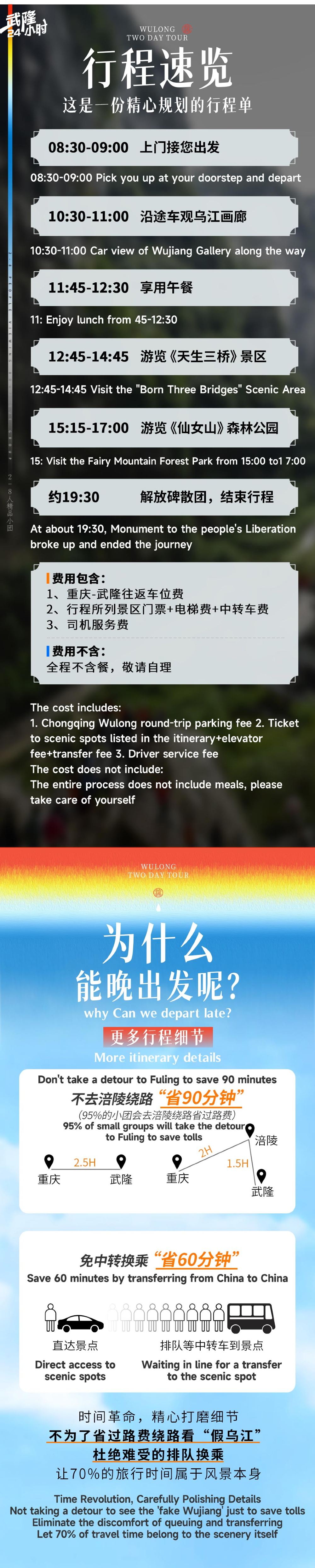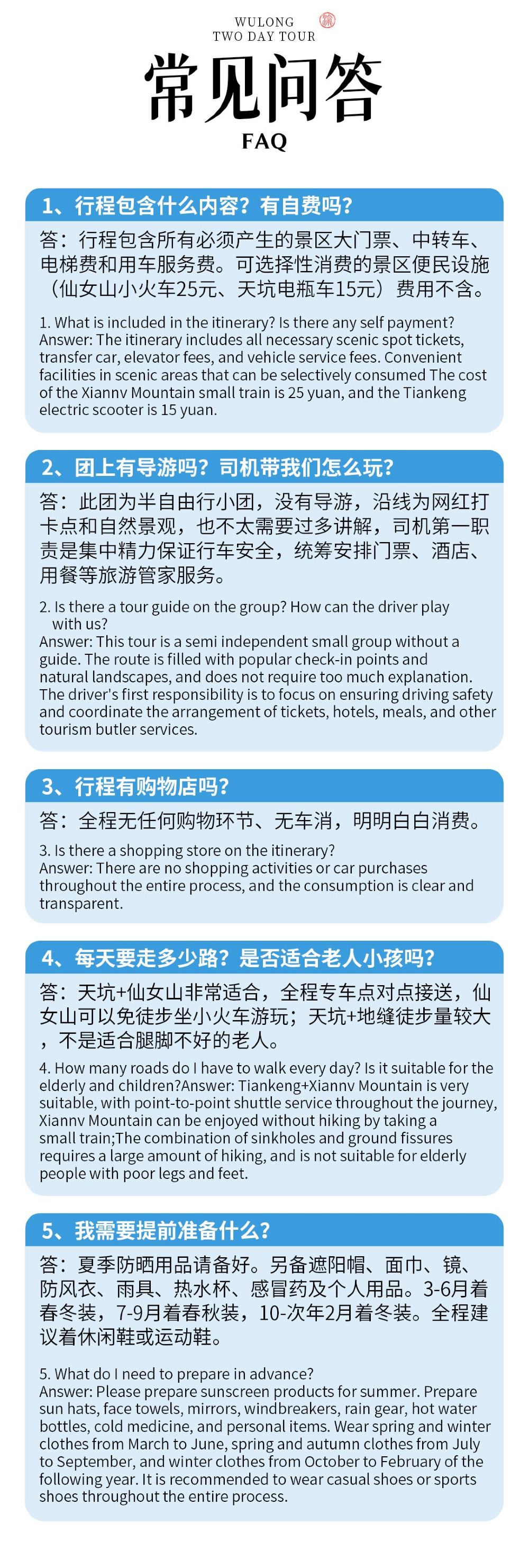 1、节假日、黄金周期间由于游客量大,为保证游客安全,武隆景区会开通应急通道入口(一号入口和二号入口)进行客源分流进入景区,请知悉!