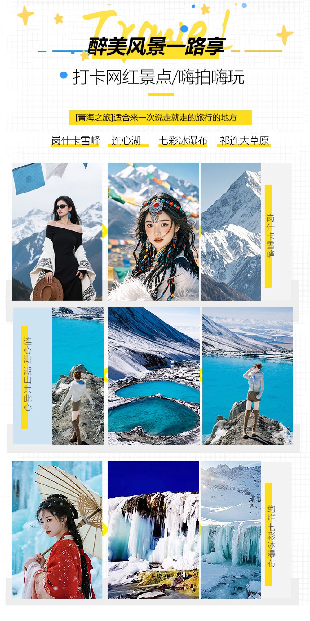 祁连岗什卡雪峰景区一日游【连心湖+七彩瀑布+赠骑马体验】【【线路特色】西北环线被“低估”的岗什卡雪峰景区,追随王一博的脚步去感受“果冻海”童话世界的美】