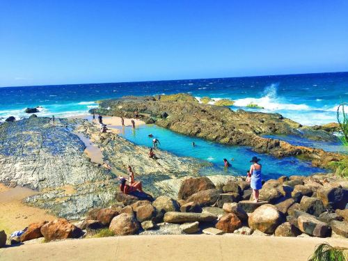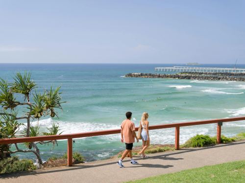 约11:00 出发前往危险角(停留约15分钟)。位于澳大利亚东海岸黄金海岸南端的库伦加塔,是新南威尔士州和昆士兰洲的交界点,其交界碑非常有特色。危险角是黄金海岸南端的海岬,以礁石环绕的天然泳池和著名冲浪点而闻名,风景壮丽