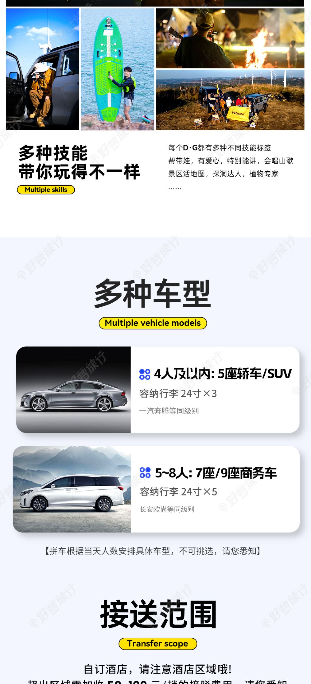 因特殊出票,景区门票无任何优惠退费(学生/老年群体、特殊证件、其他优惠人群等),敬请谅解,优惠人群建议购买单拼车套餐提前自行购买景区门票;