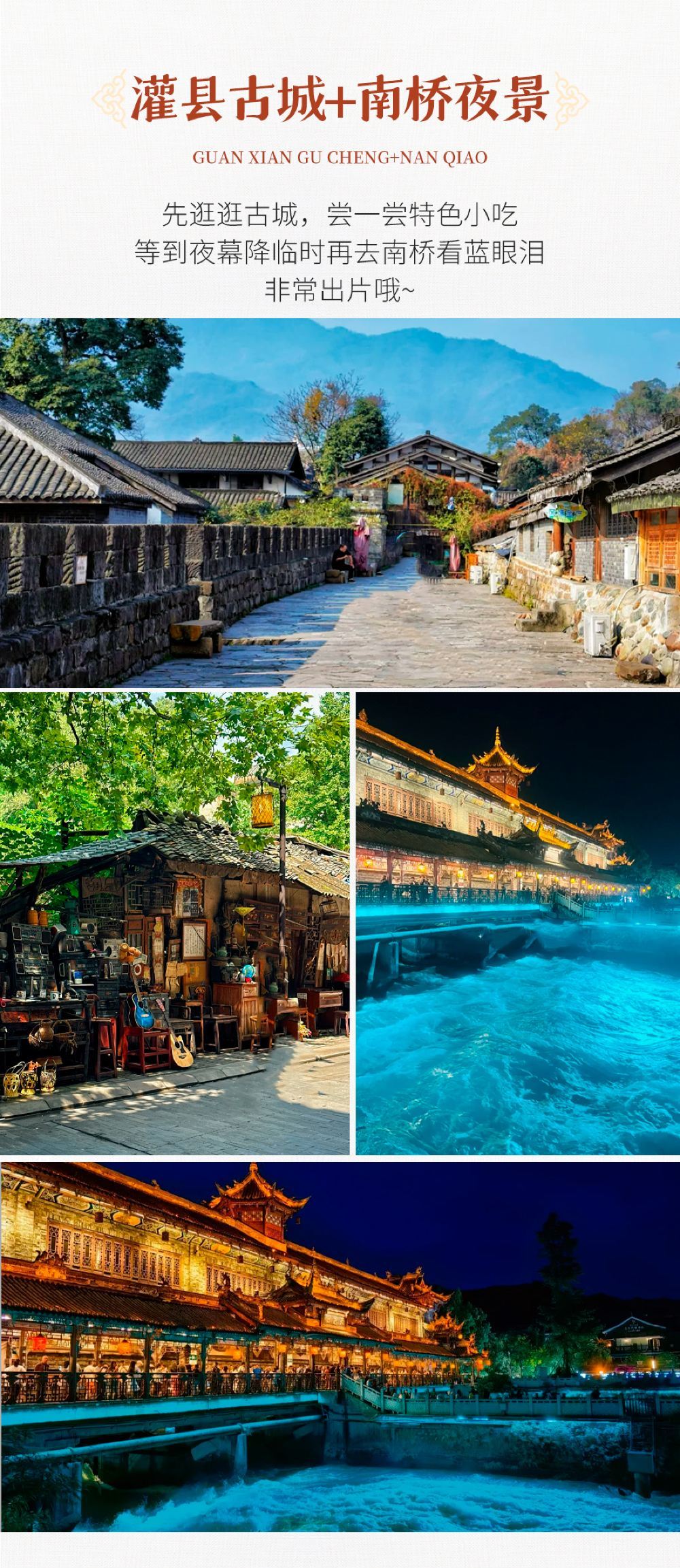 都江堰景区+灌县古城+南桥【2-8人小团 夜游打卡蓝眼泪 】【都江堰讲解,打卡南桥蓝眼泪,逛灌县古城】