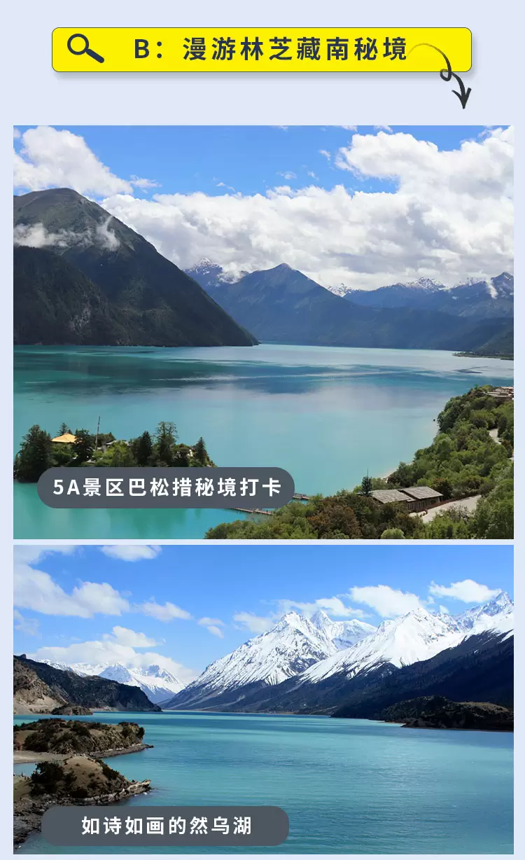 林芝来古冰川+然乌湖+雅鲁藏布大峡谷+巴松措四日游【8人团保姆车出行丨鲁朗4钻+索松村观景房丨可选经济住宿】