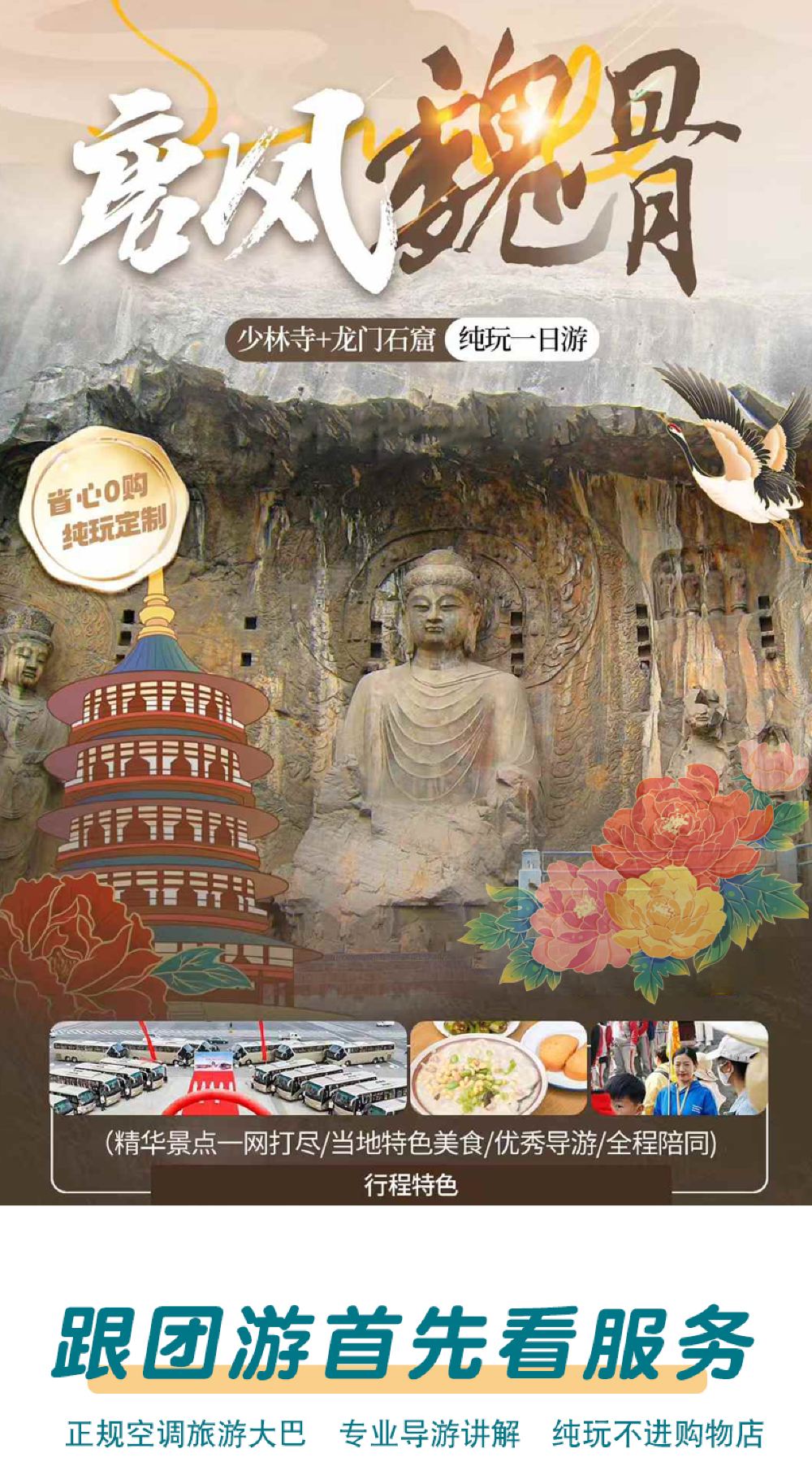4月1日起龙门石窟开放夜游亮灯,跟团行程不看亮灯夜景,如想等天黑看夜景,可脱团不跟车返程,景区自行夜游游玩(不跟车返程,车费不退,请知晓)
