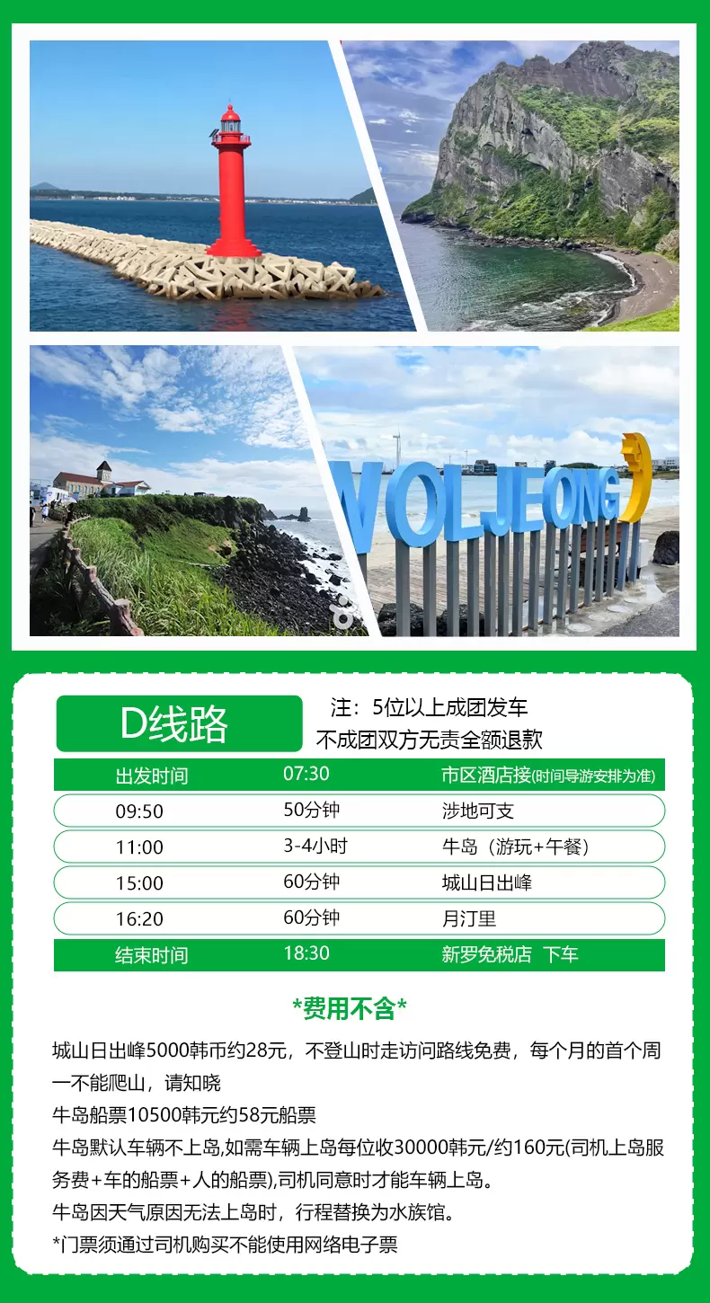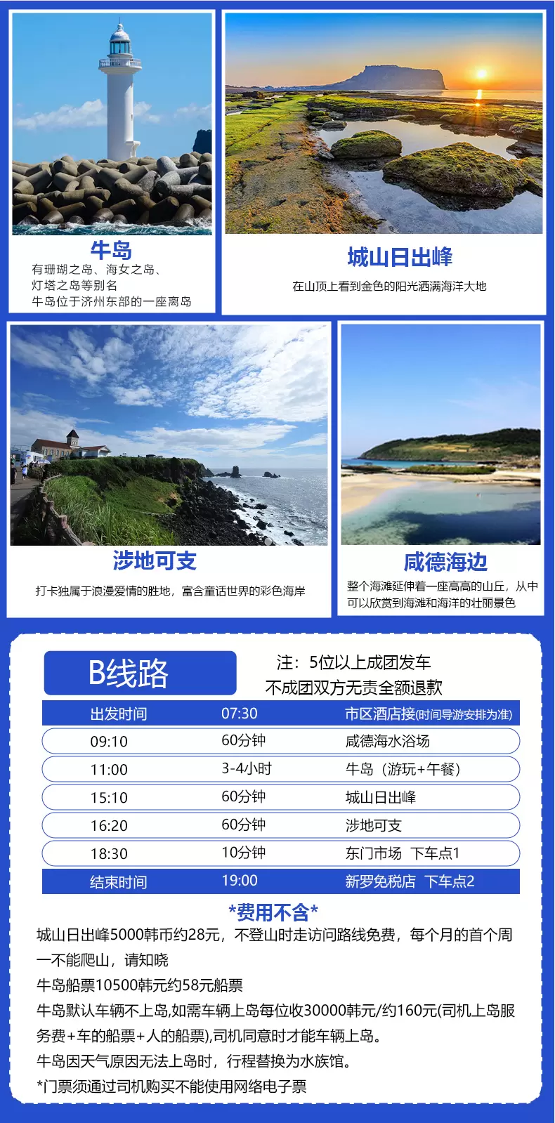 涉地可支+月汀里海边+城山日出峰+咸德海水浴场+柱状节理带+牛岛一日游【济州岛一日游】