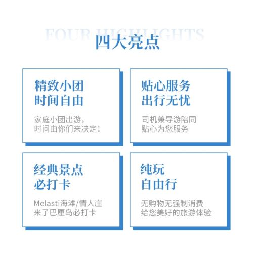 注意:接送范围是巴厘岛南部区域酒店,早上专车司机到酒店接客人前往沙努尔码头坐船,到了佩妮达岛上是拼车,6人以下纯玩小团。