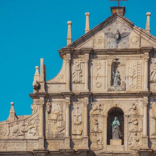 澳门大三巴一日游(专车接送,自由选择时间,不限方向可接可送)【巴洛克浮雕艺术解码​:五层花岗岩雕刻融合圣母踏龙头等东西方宗教符号,细节震撼】