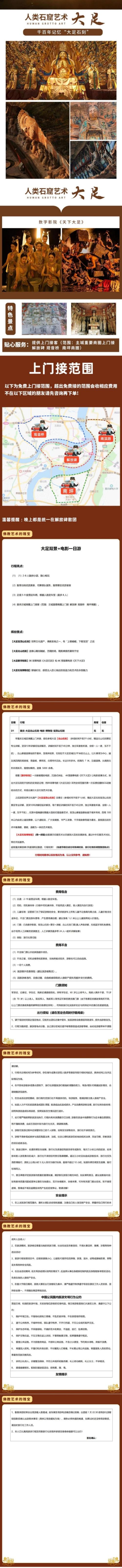 大足宝顶山石刻+北山石刻+电影一日游(2-8人商务小包团)【[大足宝顶山石刻]世界文化遗产,佛教圣地之一,有“上朝峨嵋,下朝宝顶”之说】