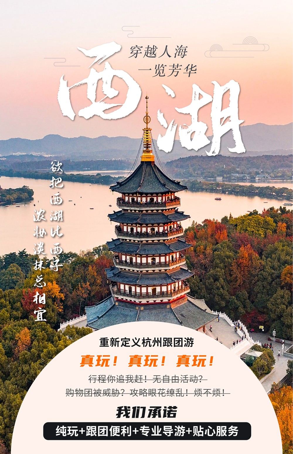 西湖风景名胜区+雷峰塔+西湖游船+灵隐寺飞来峰一日游【纯玩】【春色撩人游江南,西湖游船雷峰塔,灵隐祈福请愿,杭州景点一网打尽】