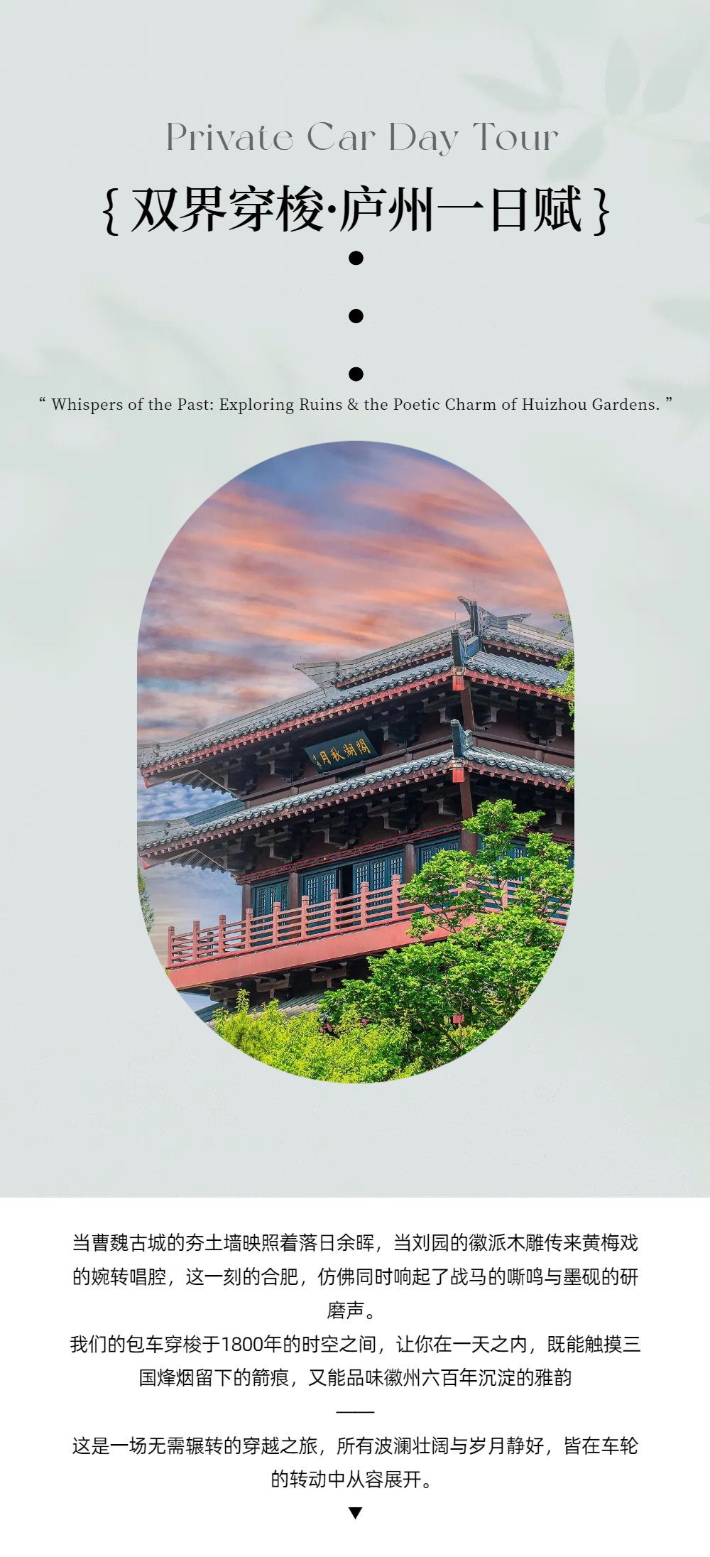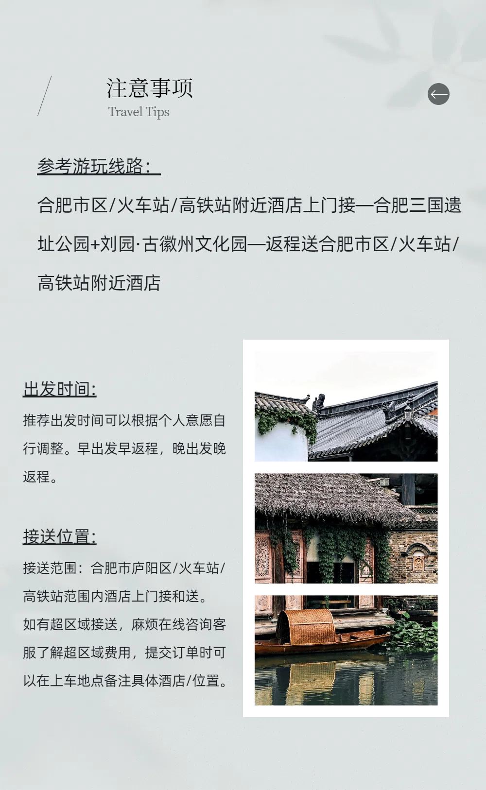 安徽合肥包车快速打卡9小时/三国遗址公园+刘园·古徽州文化园【三国徽韵一日览,穿越千年画卷中。】