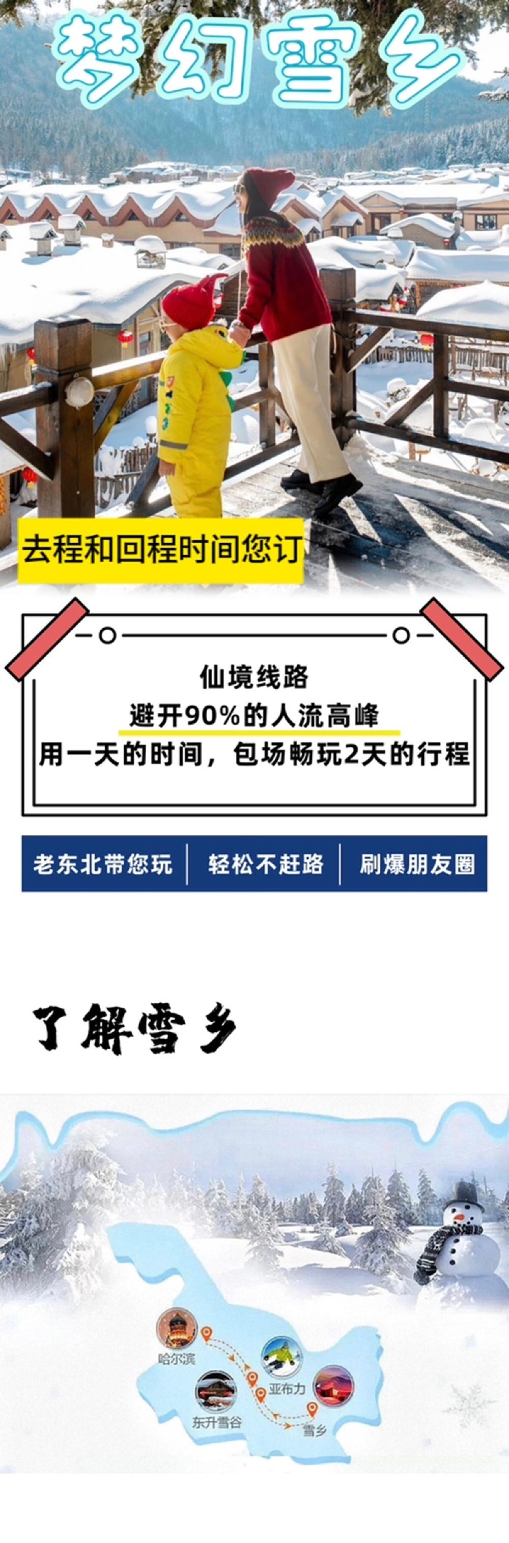 雪乡一日游【雪乡一日纯包车】亚布力起止、时间自由、项目可加【行程宽松:出发时间您来定,可个性化定制行程。】