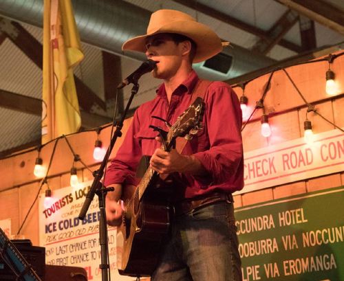 进入仿照60、70年代中部牛仔酒吧设计的会场接待处,换票并领取outback spectacular标记的牛仔草帽