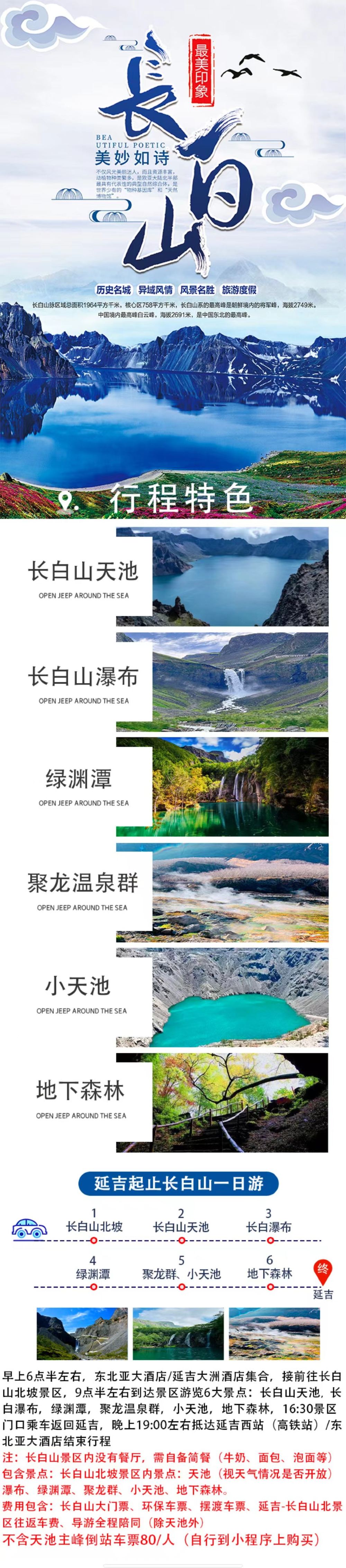 3.出行日期无票时,为用户办理候补票(景区放票就有票90%成功率);同时下单的同行游客可分配同一时间段的票;候补票出票时间不固定,随时可能出票。(出票后客服会立即联系)费用不含: 上天池的主峰车票80/人(如果需要我们代买请提前告知)