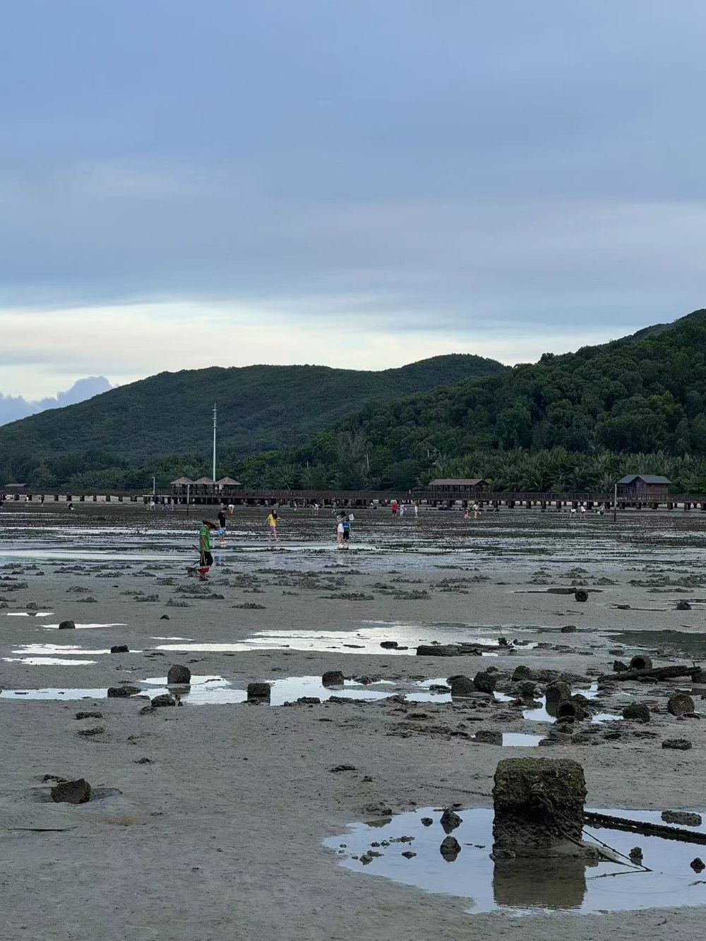 赶海地点:陵水新村猴岛旅游码头,该区域浅滩面积大、水位浅,无复杂礁石,是亲子家庭的理想选择。