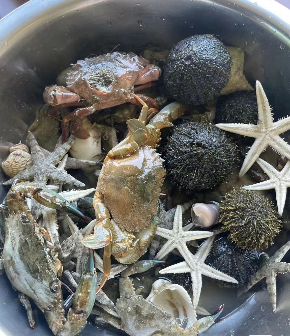 赶海收获:常规可捕获海胆,小螃蟹,海星及多种海螺,运气佳时能偶遇小鱼群,所有收获可自行带走。