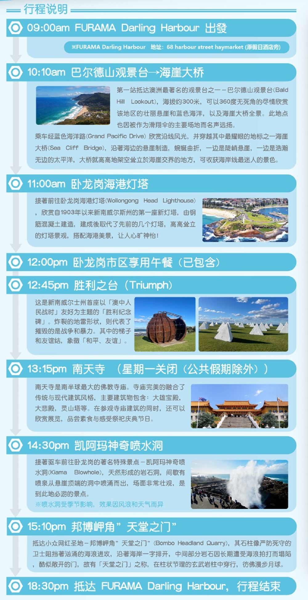 澳大利亚悉尼卧龙岗中文一日游/南天寺+神奇喷水洞+海崖大桥【[景点]神奇喷水洞/蓝色海洋路/南天寺】