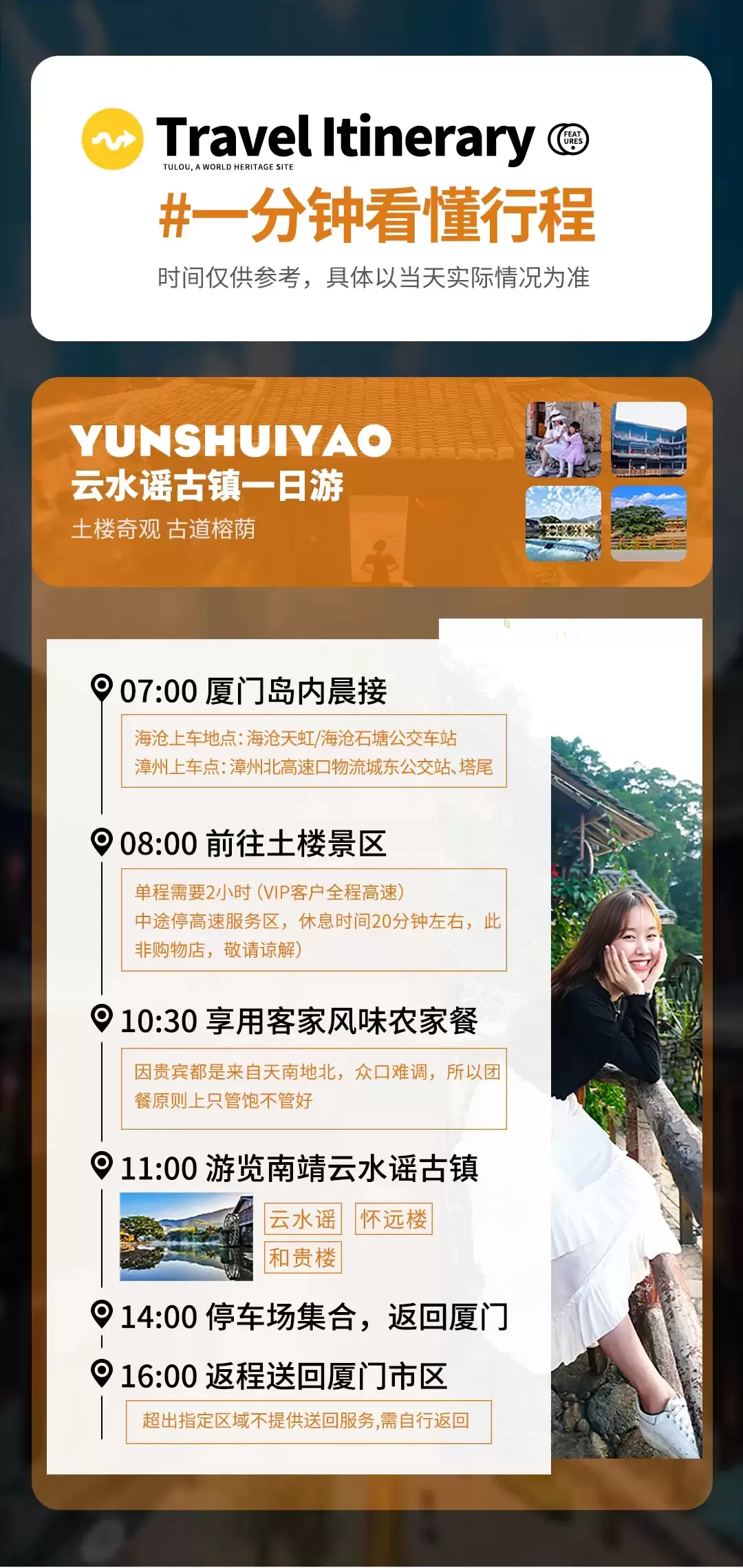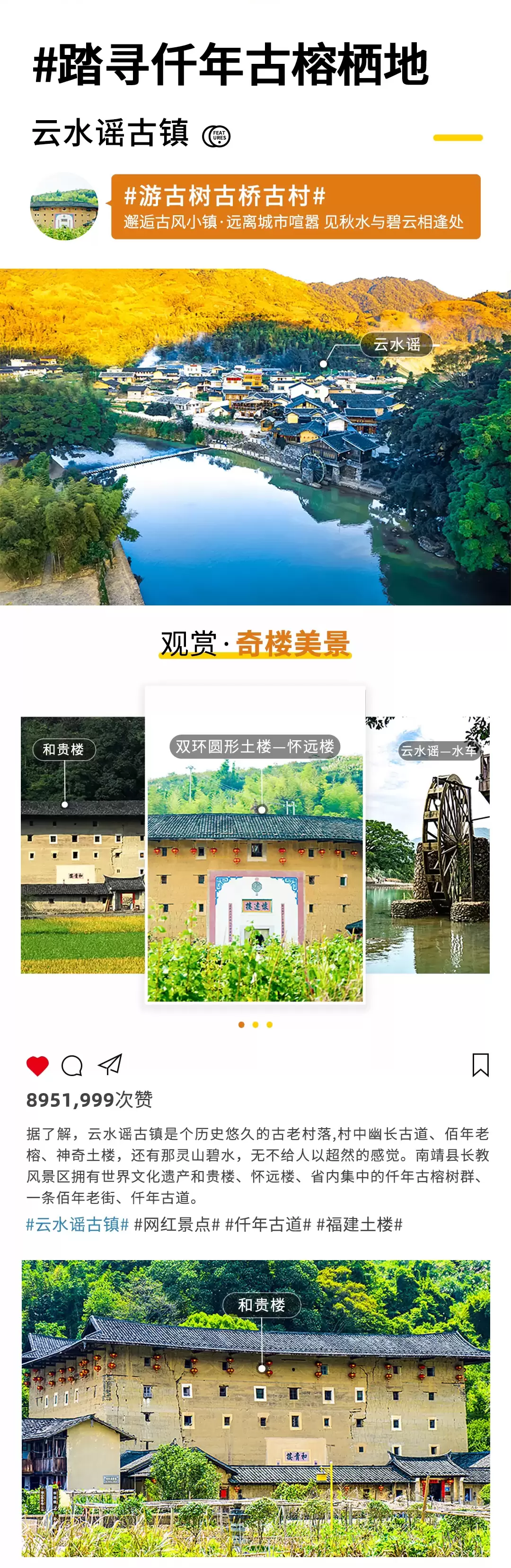 漳州云水谣古镇+怀远楼+和贵楼一日游【含门票+上门接送+午餐+免费体验福建茶文化|土楼天天发团不转卖】