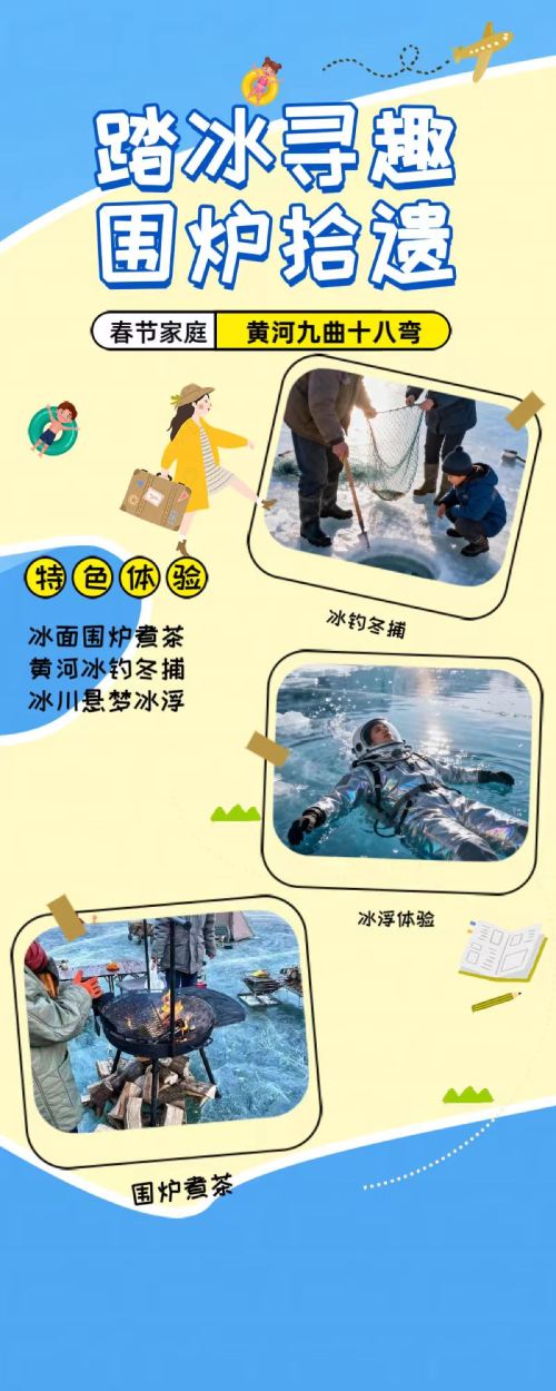 内蒙古老牛湾黄河大峡谷冰浮+冰钓冬捕+围炉煮茶【[深度体验]一天游玩2026内蒙古冬季三大沉浸式核心体验项目:冰浮+冰钓(冬捕)+围炉煮茶】