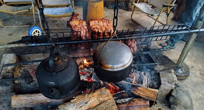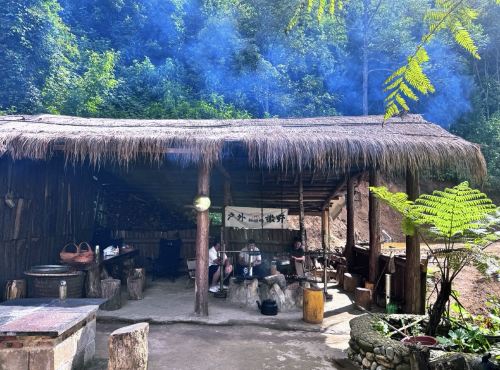 ▲ 徒步回来荒野厨房洗涮一下,吃点野果和水果 喝点茶水,休息一下,等待吃下午饭,山茅野菜 烧烤 家常小炒。口味偏腾冲风味,还有点缅甸风味。这里有一个厨师是缅甸华侨,每天她都会做点缅甸菜。饭后去温泉泡脚,缓解疲劳,返回城里。