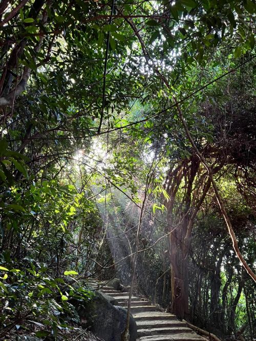 ▲ 兰花谷:是原生态热带雨林谷,在谷内长达1000多米的回形步道上藤萝密布,溪水潺潺,多种兰花争奇斗艳,谷内步行登山线路沿途遮天蔽日,生态好,参天巨榕、百年古藤、野生桄榔及热带雨林六大奇观随处可见。