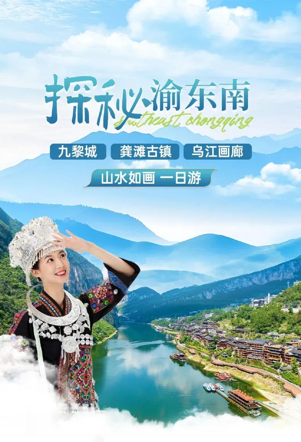 【一价全含】重庆彭水纯玩一日游九黎城+龚滩古镇+乌江画廊游船【[千年古镇文化探索]青石板街与错落一致的吊脚楼,感受“建筑艺术奇葩”被誉为“重庆缩小版的千户苗寨”。】