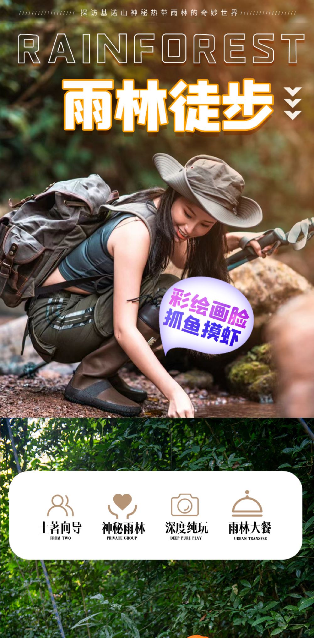 基诺山高端雨林徒步|丛林秘境探险,刺激项目,雨林野餐|【赠研学证书+溯溪水路+竹筏+古法射箭+高空秋千+树降+割胶+彩妆+抓螃蟹找野果+等多种游玩项目全包含】
