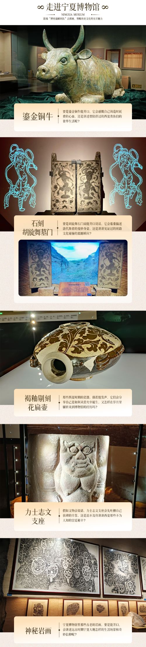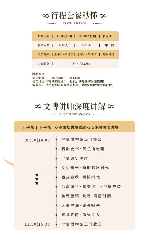 一、宁夏博物馆讲解时间不少于2.5小时,主要讲解通史馆哦~ 时间富裕的情况下岩画馆会酌情讲解~