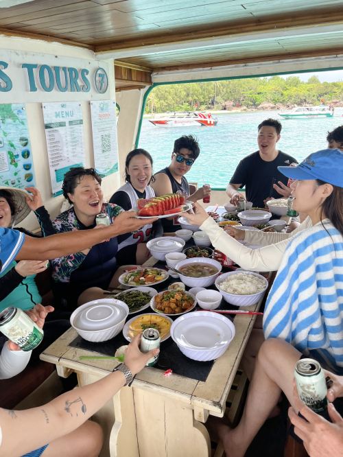 ▲ 浮潜结束后,您可以在船上享用种类丰富的美味午餐,补充能量。