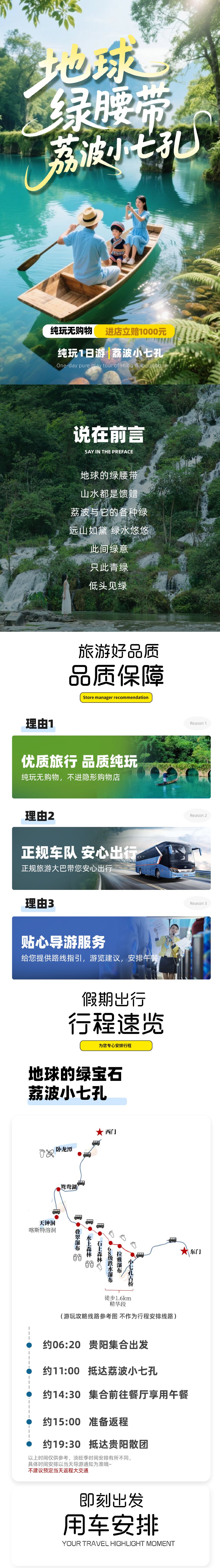 ▲ 由于贵州景区普遍较大,各家庭游览速度不一,为了不影响大家的游览体验,导游会在车上进行统一讲解,到景区后自由活动,根据导游通知按时集合返回。页面时间仅供参考,具体出行时间安排以导游通知为准。(导游在景区内不带队讲解,敬请知悉) 直通车跟一日游的团友是在一个车的,到达景区附近要先用餐,用完餐之后,大家一起乘车前往景区哦~