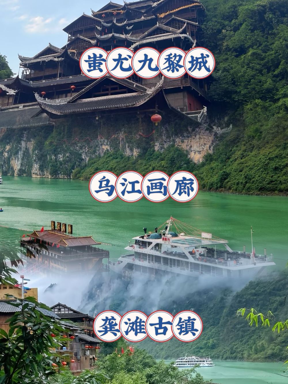 游玩时间建议:龚滩古城3-4小时,蚩尤九黎城3-3.5小时,乌江画廊游船2.5-3小时