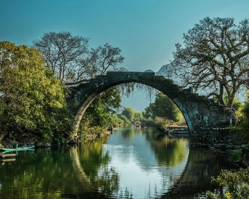 ▲ 阳朔古桥—阳朔有三大古桥:遇龙桥、 富里桥和仙桂桥。遇龙桥的名声悠久, 富里桥的造型漂亮,仙桂桥的历史悠久,尤其富里桥的美是阳朔不容错过的一道风景线。
