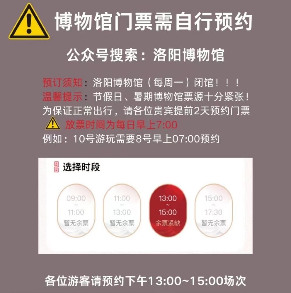 洛阳博物馆需贵宾自行预约(提前2天早上7:00准时开票)