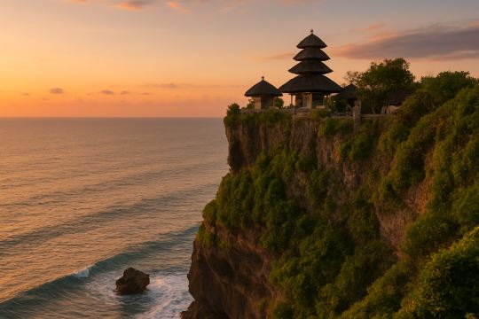 乌鲁瓦图寺(Pura Luhur Uluwatu)是巴厘岛神圣的海上寺庙之一,雄伟地矗立在印度洋上方70米的陡峭悬崖上。这座拥有数百年历史的寺庙坐拥壮丽的海景,尤其是在日落时分。游客可以探索寺庙内部,欣赏标志性的凯恰克火舞等文化表演,并观察寺庙里的猴子。乌鲁瓦图不仅仅是一个宗教圣地,更是巴厘岛精神遗产和自然美景的象征。
