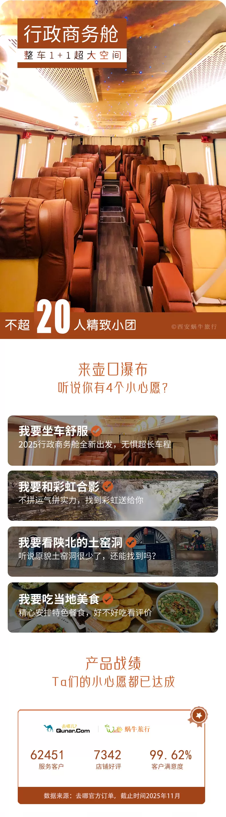 西安陕西黄河壶口瀑布+黄帝陵轩辕庙一日游【2025全新行政舱·1+1超大空间·20人精致小团·专车接早】