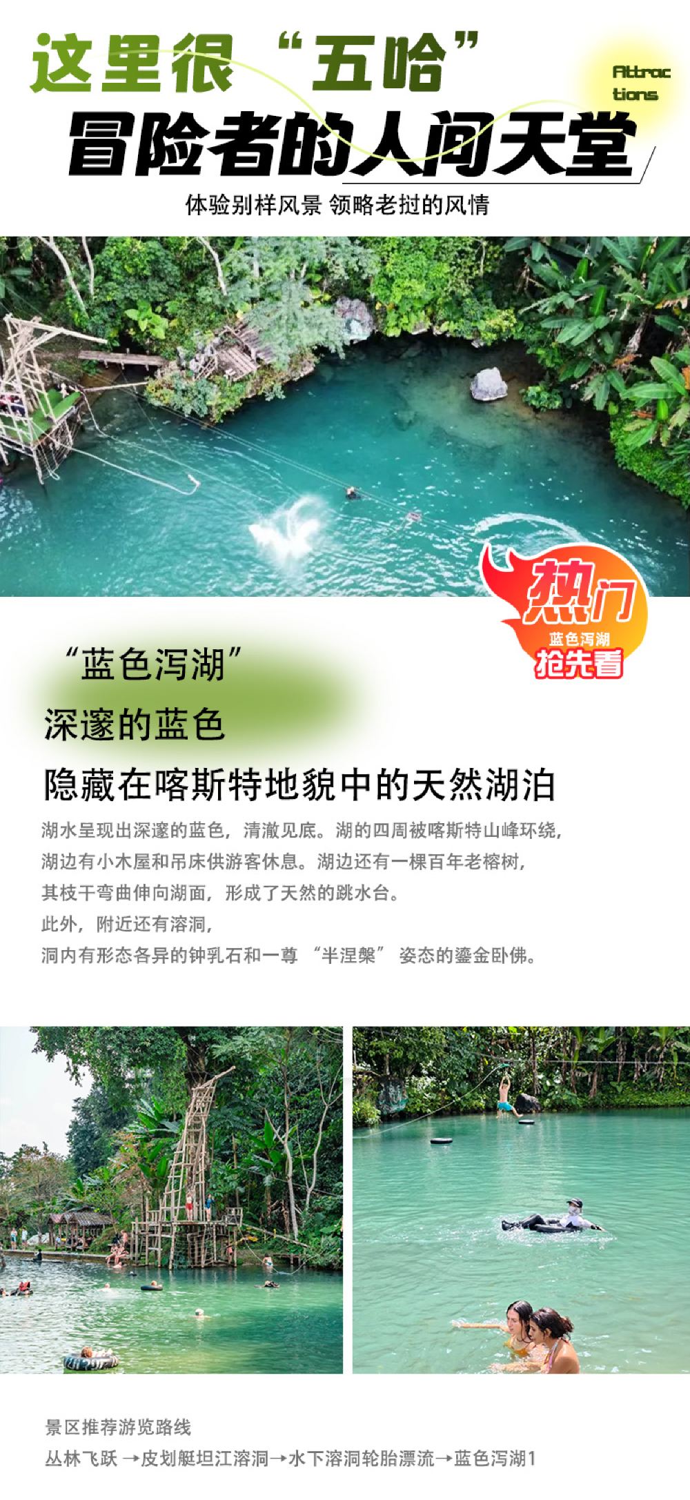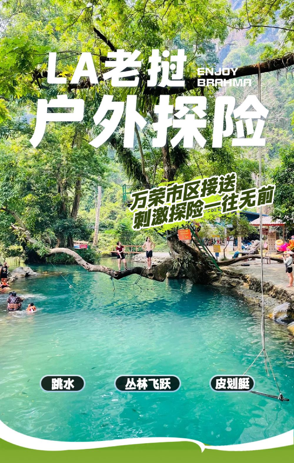 老挝万荣品质纯玩一日游【穿越从林+皮划艇+泻湖1-11人团】【被称为“小桂林”的万荣,山清水秀, adventure 爱好者的宝藏地!】