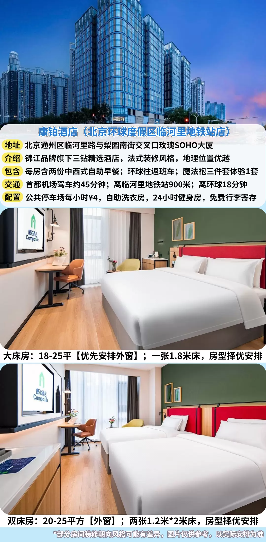 【锦江集团品牌|三钻酒店】赠魔法袍体验丨北京环球度假区周边康铂酒店+环球1日票/1.5日票+自助早餐+园区接送