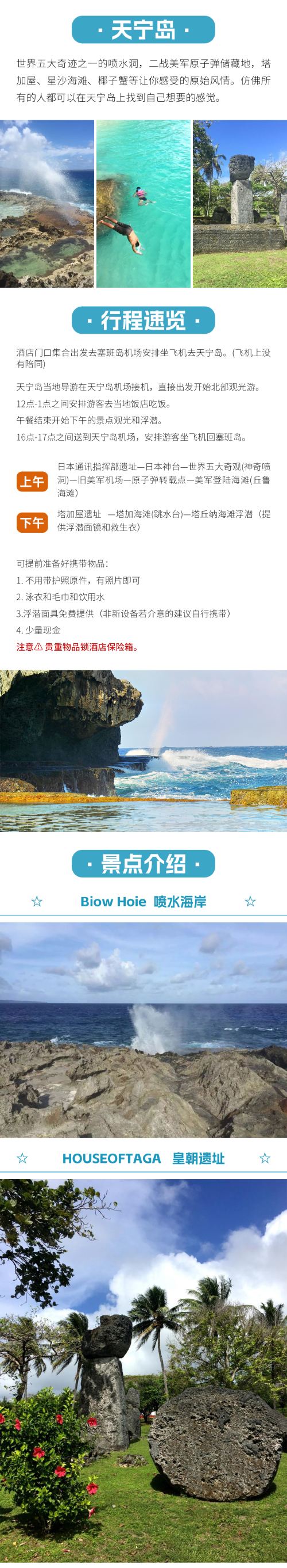美国塞班岛天宁岛一日游【含接送+小飞机往返+浮潜+含午餐】【塞班岛旅游局官方认证地接旅行社,持证中英文导游,24小时中文客服】