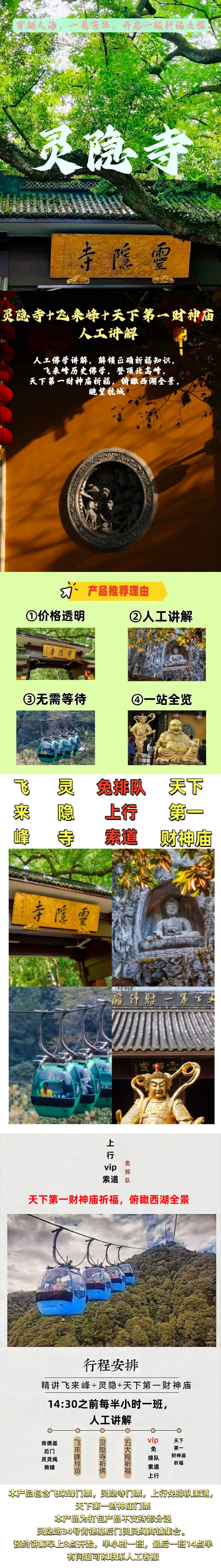 灵隐寺+飞来峰+天下第一财神庙半日游【免排队上行索道+讲解】【【贴心服务,省力游玩】人工佛学讲解,解锁正确祈福知识,飞来峰历史佛学】