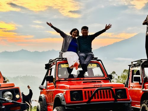 巴图尔火山日出吉普车一日游(含摄影师陪同)【巴杜尔火山的壮丽日出——从巴厘岛*活跃的火山之一欣赏令人惊叹的日出,并欣赏火山口的全景。 惊险刺激的黑色熔岩吉普车探险——乘坐激动人心的越野吉普车,探索过去火山喷发留下的著名黑色熔岩场。 值得在 Instagram 上分享的瞬间——与经验丰富的当地摄影师一起捕捉巴杜尔山令人惊叹的日出美景,留下无忧无虑的回忆。】
